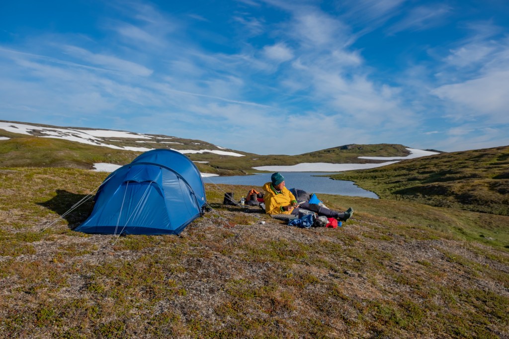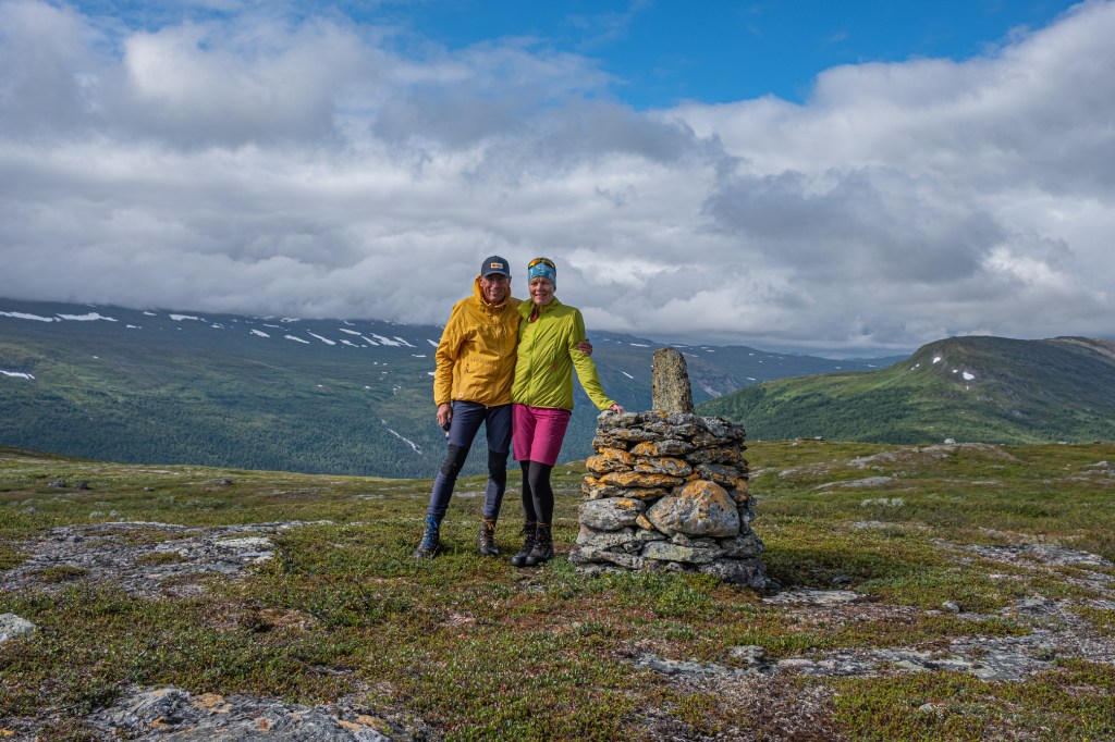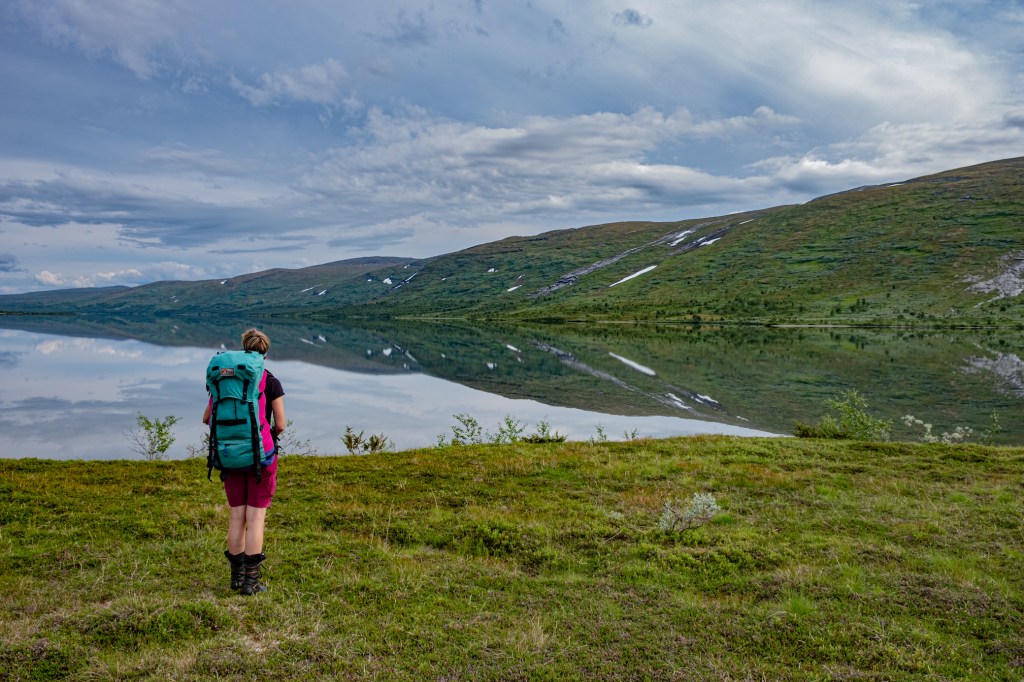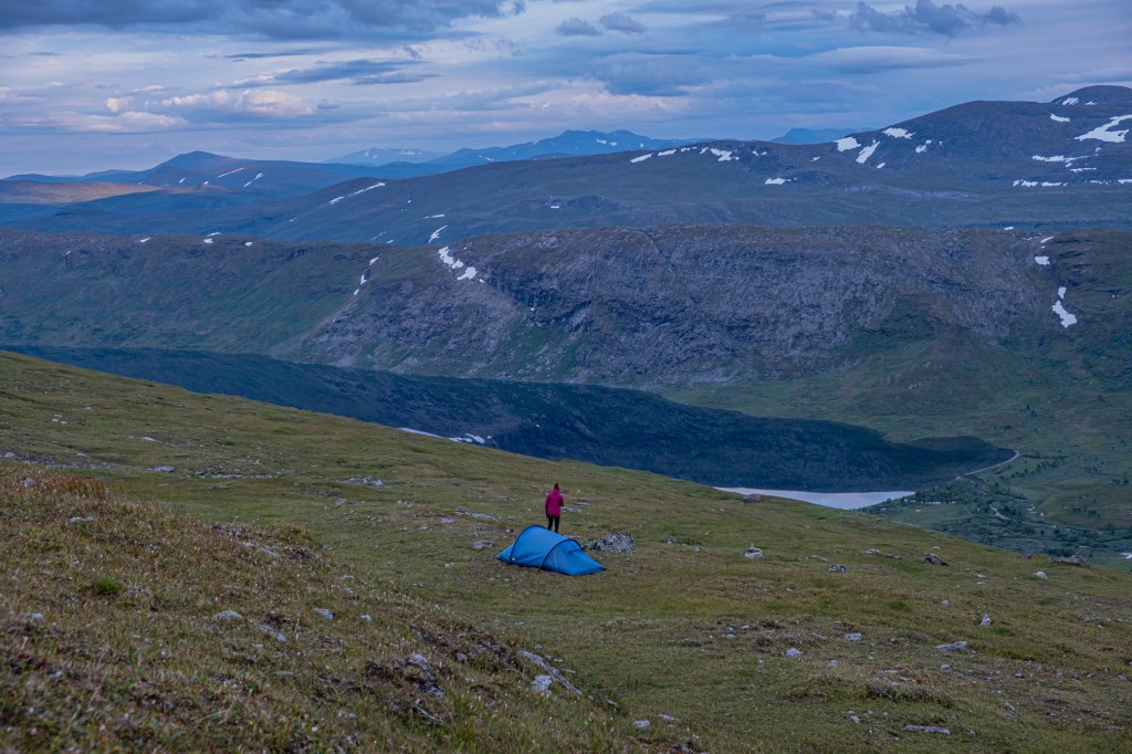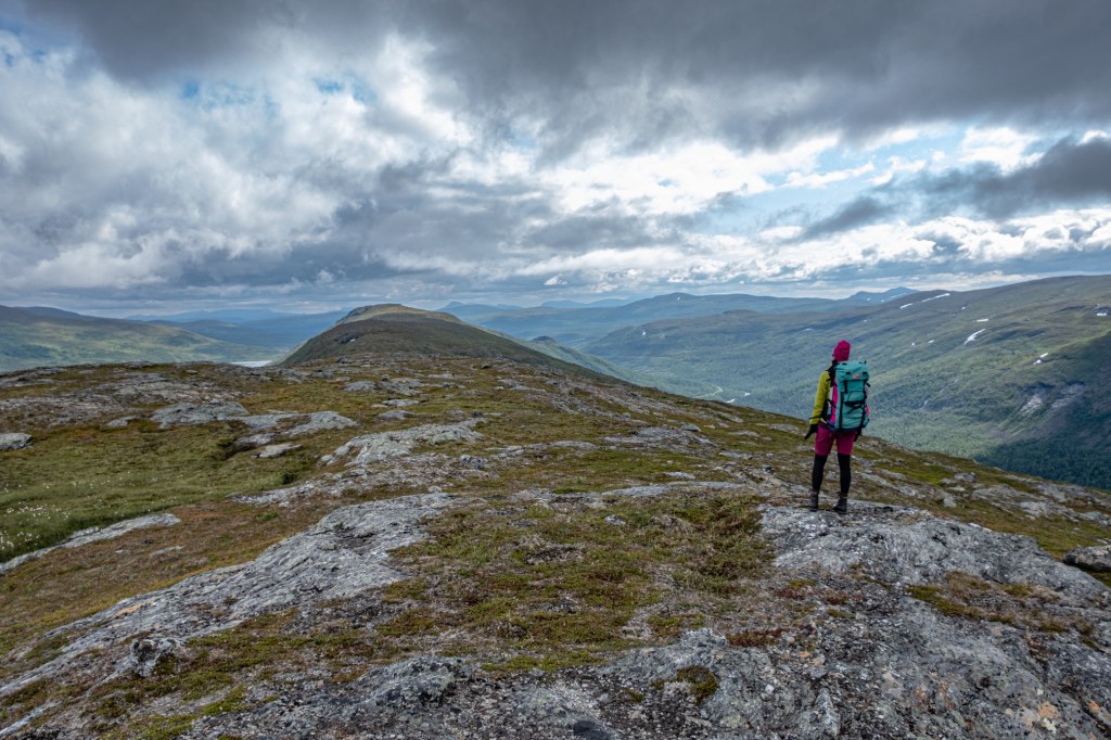 550 fallhöjdsmeter rätt upp i himlen, vad över bäckar, gränsmarkeringar, kamvandring, bäckraviner, blomsterängar, en stuga om man vill bo inne och ledrösen men ingen stig. Lägger man sedan till fantastiska vyer. Snudd på fjordlandskap och magiska tältplatser. En vandringsled på över 1000 meters höjd, (ca 1200). Klart vatten överallt och en massa mygg. En stuga full med namn i gästboken från vandrare som går gröna bandet. Vackraste leden som just nu kräver erfarenhet innan den nya ”Södra Lapplandsleden” blir klar. Vandringen avslutas med stiglöst spankulerande på en fjällrygg i en halvmil! En fjällrygg med branta stup på bägge sidorna. Atoklimpen till Skalmodal. Denna vandring kommer bli mångas favorit. God tur! ![]()